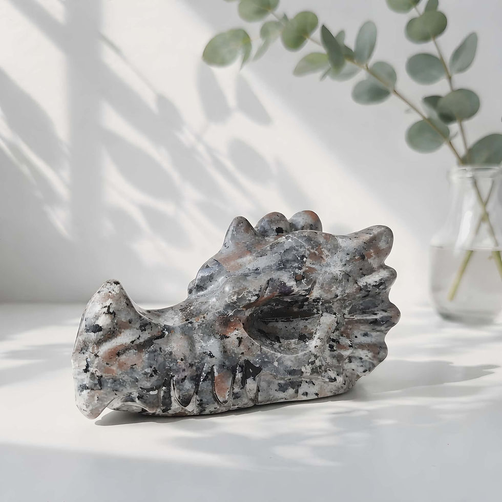 Our dragon heads are expertly carved from natural stone, with attention to intricate details that bring each piece to life. Polished to enhance the stone’s natural colors and patterns, every dragon head is unique, combining craftsmanship and the distinctive beauty of genuine stone for a bold and captivating display.